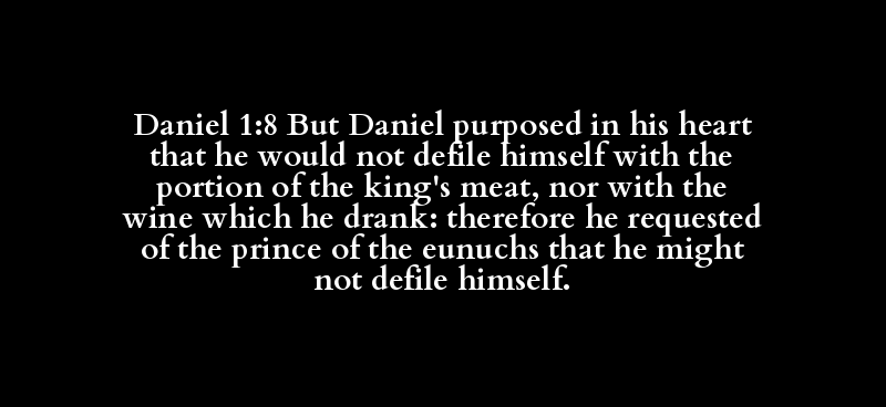 Daniel 1:8 But Daniel purposed in his heart that he would not defile himself with the portion of the king's meat, nor with the wine which he drank: therefore he requested of the prince of the eunuchs that he might not defile himself.