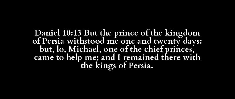 Daniel 10:13 But the prince of the kingdom of Persia withstood me one and twenty days: but, lo, Michael, one of the chief princes, came to help me; and I remained there with the kings of Persia.