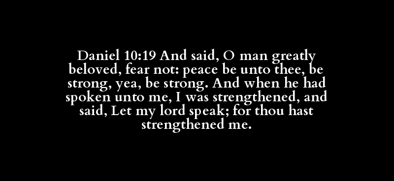 Daniel 10:19 And said, O man greatly beloved, fear not: peace be unto thee, be strong, yea, be strong. And when he had spoken unto me, I was strengthened, and said, Let my lord speak; for thou hast strengthened me.