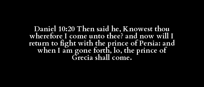 Daniel 10:20 Then said he, Knowest thou wherefore I come unto thee? and now will I return to fight with the prince of Persia: and when I am gone forth, lo, the prince of Grecia shall come.