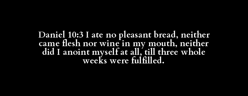 Daniel 10:3 I ate no pleasant bread, neither came flesh nor wine in my mouth, neither did I anoint myself at all, till three whole weeks were fulfilled.