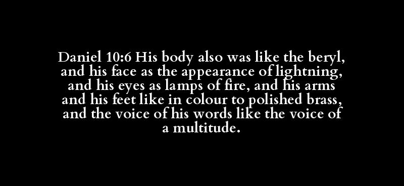 Daniel 10:6 His body also was like the beryl, and his face as the appearance of lightning, and his eyes as lamps of fire, and his arms and his feet like in colour to polished brass, and the voice of his words like the voice of a multitude.