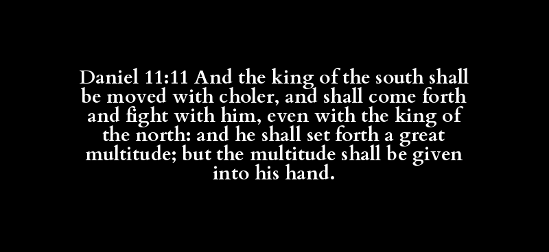 Daniel 11:11 And the king of the south shall be moved with choler, and shall come forth and fight with him, even with the king of the north: and he shall set forth a great multitude; but the multitude shall be given into his hand.
