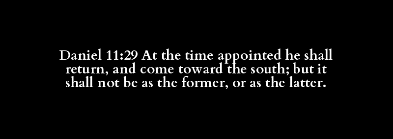 Daniel 11:29 At the time appointed he shall return, and come toward the south; but it shall not be as the former, or as the latter.