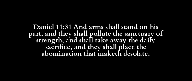 Daniel 11:31 And arms shall stand on his part, and they shall pollute the sanctuary of strength, and shall take away the daily sacrifice, and they shall place the abomination that maketh desolate.