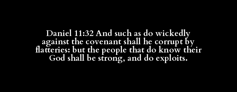 Daniel 11:32 And such as do wickedly against the covenant shall he corrupt by flatteries: but the people that do know their God shall be strong, and do exploits.