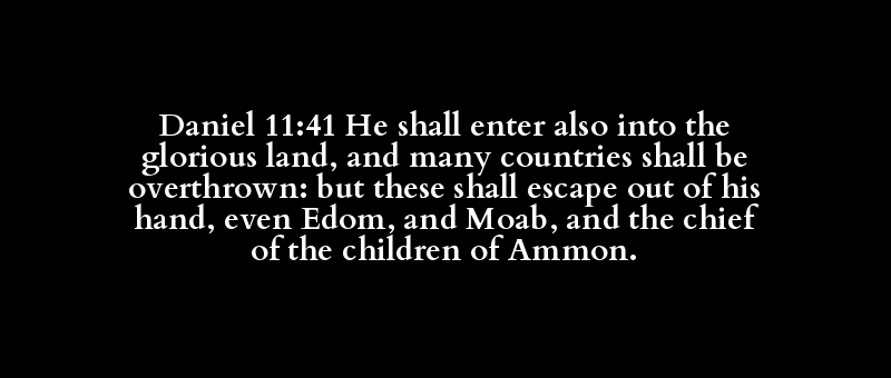 Daniel 11:41 He shall enter also into the glorious land, and many countries shall be overthrown: but these shall escape out of his hand, even Edom, and Moab, and the chief of the children of Ammon.