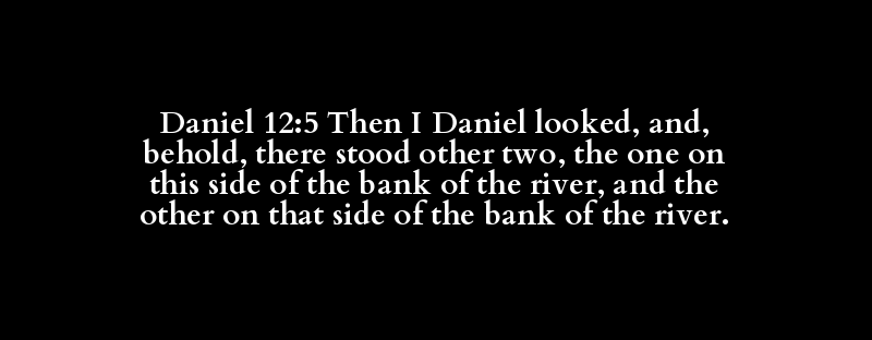 Daniel 12:5 Then I Daniel looked, and, behold, there stood other two, the one on this side of the bank of the river, and the other on that side of the bank of the river.
