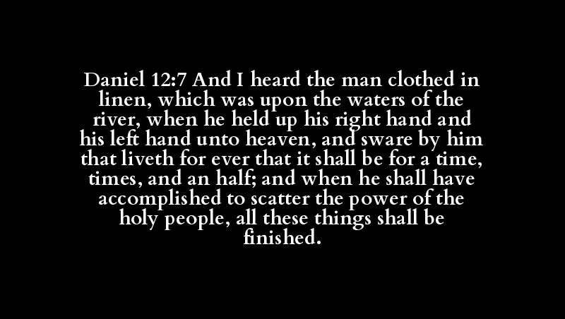 Daniel 12:7 And I heard the man clothed in linen, which was upon the waters of the river, when he held up his right hand and his left hand unto heaven, and sware by him that liveth for ever that it shall be for a time, times, and an half; and when he shall have accomplished to scatter the power of the holy people, all these things shall be finished.