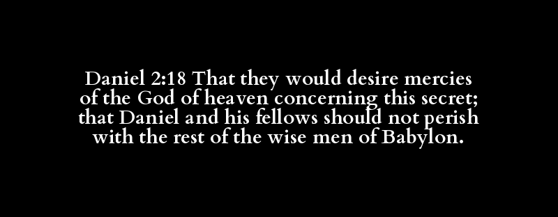 Daniel 2:18 That they would desire mercies of the God of heaven concerning this secret; that Daniel and his fellows should not perish with the rest of the wise men of Babylon.