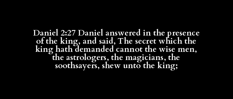 | Daniel | answer, speak | before, × from, × I (thought), × me, +.. | king, royal | command, declare, say, speak, tell | secret | king, royal | ask, demand, require | be able, can, couldest, prevail | or even, neither, no(-ne, -r), (can-)n.. | wise | astrologer | magician | cut out, soothsayer | shew | king, royal |