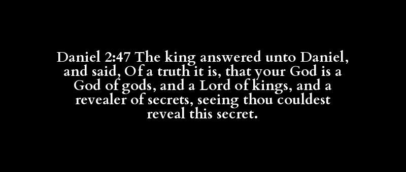 Daniel 2:47 The king answered unto Daniel, and said, Of a truth it is, that your God is a God of gods, and a Lord of kings, and a revealer of secrets, seeing thou couldest reveal this secret.