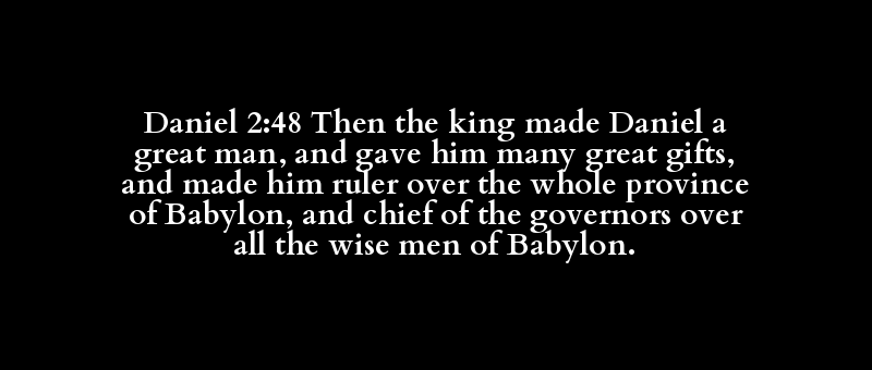 | now, that time, then | king, royal | make a great man, grow | Daniel | make a great man, grow | deliver, give, lay, + prolong, pay, yi.. | exceeding, great(-ly); many, much, sor.. | (very) great (things) | gift | have the mastery, have power, bear rul.. | about, against, concerning, for, (ther.. | all, any, + (forasmuch) as, + be-(for .. | province | Babylon | captain, chief, great, lord, master, s.. | governor | about, against, concerning, for, (ther.. | all, any, + (forasmuch) as, + be-(for .. | wise | Babylon |