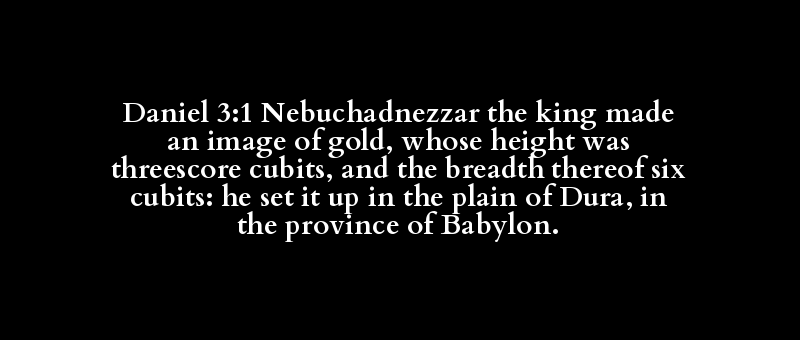 Daniel 3:1 Nebuchadnezzar the king made an image of gold, whose height was threescore cubits, and the breadth thereof six cubits: he set it up in the plain of Dura, in the province of Babylon.