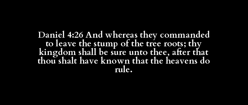Daniel 4:26 And whereas they commanded to leave the stump of the tree roots; thy kingdom shall be sure unto thee, after that thou shalt have known that the heavens do rule.