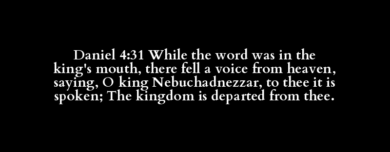 Daniel 4:31 While the word was in the king's mouth, there fell a voice from heaven, saying, O king Nebuchadnezzar, to thee it is spoken; The kingdom is departed from thee.