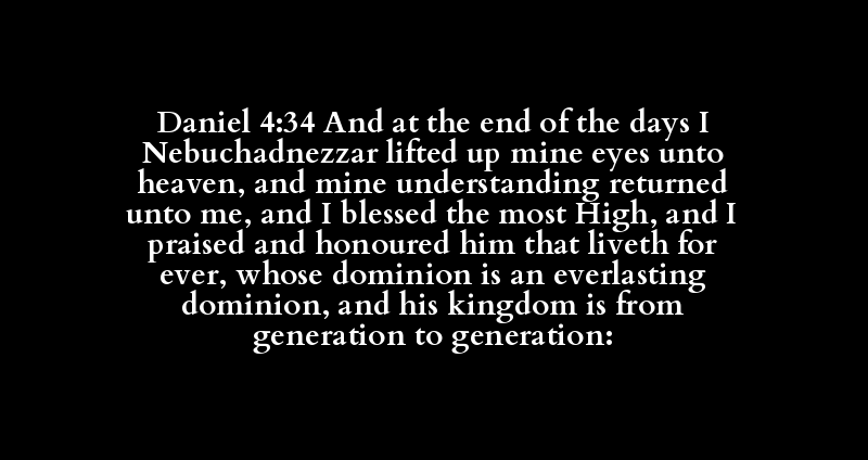 Daniel 4:34 And at the end of the days I Nebuchadnezzar lifted up mine eyes unto heaven, and mine understanding returned unto me, and I blessed the most High, and I praised and honoured him that liveth for ever, whose dominion is an everlasting dominion, and his kingdom is from generation to generation: