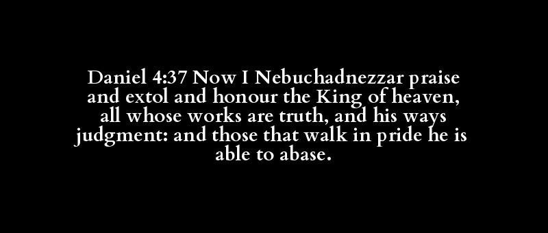 Daniel 4:37 Now I Nebuchadnezzar praise and extol and honour the King of heaven, all whose works are truth, and his ways judgment: and those that walk in pride he is able to abase.