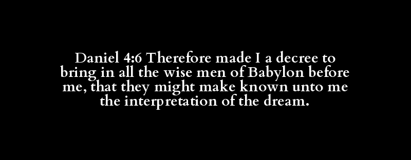 Daniel 4:6 Therefore made I a decree to bring in all the wise men of Babylon before me, that they might make known unto me the interpretation of the dream.
