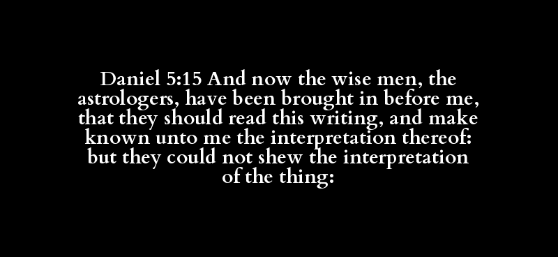 | now | wise | astrologer | bring in, come in, go in | before, × from, × I (thought), × me, +.. | call, cry, read | (afore-)time, + after this manner, her.. | prescribing, writing(-ten) | certify, know, make known, teach | interpretation | be able, could | or even, neither, no(-ne, -r), (can-)n.. | shew | interpretation | commandment, matter, thing, word |