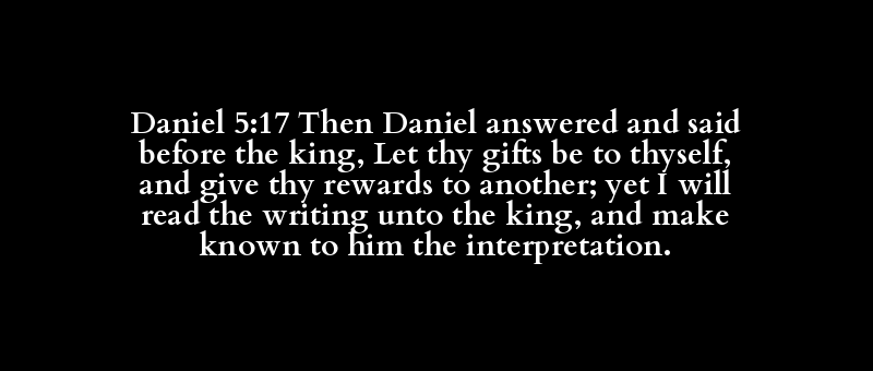Daniel 5:17 Then Daniel answered and said before the king, Let thy gifts be to thyself, and give thy rewards to another; yet I will read the writing unto the king, and make known to him the interpretation.