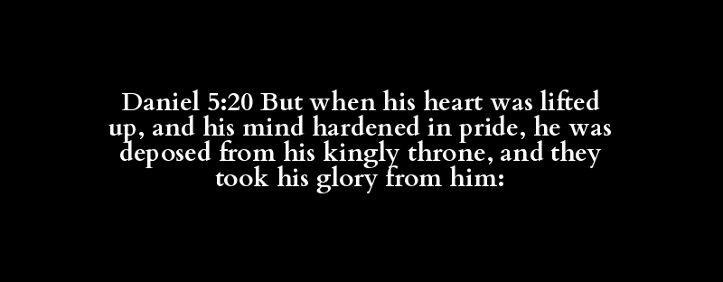 Daniel 5:20 But when his heart was lifted up, and his mind hardened in pride, he was deposed from his kingly throne, and they took his glory from him: