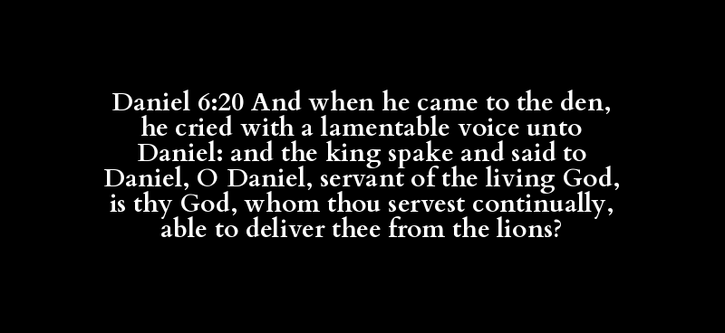 Daniel 6:20 And when he came to the den, he cried with a lamentable voice unto Daniel: and the king spake and said to Daniel, O Daniel, servant of the living God, is thy God, whom thou servest continually, able to deliver thee from the lions?