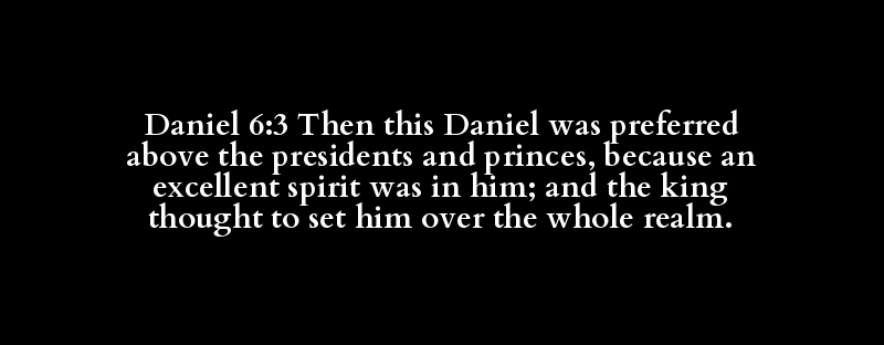 Daniel 6:3 Then this Daniel was preferred above the presidents and princes, because an excellent spirit was in him; and the king thought to set him over the whole realm.