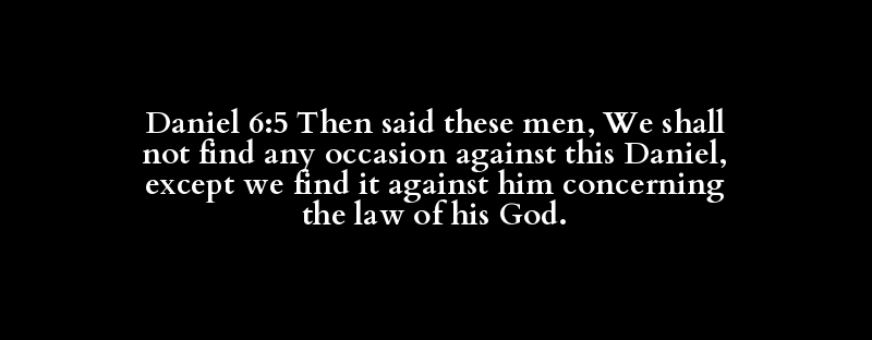 Daniel 6:5 Then said these men, We shall not find any occasion against this Daniel, except we find it against him concerning the law of his God.