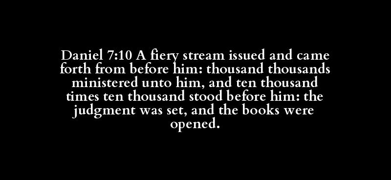 Daniel 7:10 A fiery stream issued and came forth from before him: thousand thousands ministered unto him, and ten thousand times ten thousand stood before him: the judgment was set, and the books were opened.