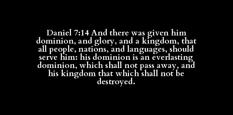 Daniel 7:14 And there was given him dominion, and glory, and a kingdom, that all people, nations, and languages, should serve him: his dominion is an everlasting dominion, which shall not pass away, and his kingdom that which shall not be destroyed.