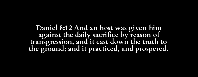 Daniel 8:12 And an host was given him against the daily sacrifice by reason of transgression, and it cast down the truth to the ground; and it practiced, and prospered.