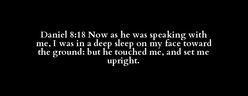 Daniel 8:18 Now as he was speaking with me, I was in a deep sleep on my face toward the ground: but he touched me, and set me upright.