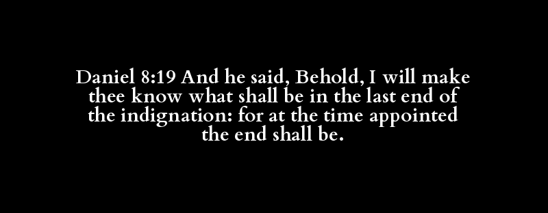 Daniel 8:19 And he said, Behold, I will make thee know what shall be in the last end of the indignation: for at the time appointed the end shall be.