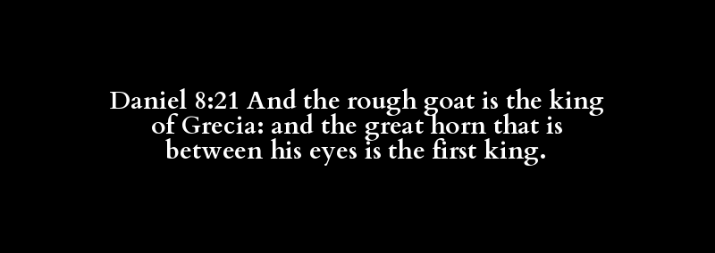 Daniel 8:21 And the rough goat is the king of Grecia: and the great horn that is between his eyes is the first king.