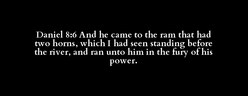 Daniel 8:6 And he came to the ram that had two horns, which I had seen standing before the river, and ran unto him in the fury of his power.