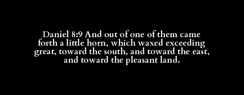 Daniel 8:9 And out of one of them came forth a little horn, which waxed exceeding great, toward the south, and toward the east, and toward the pleasant land.