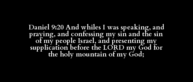 Daniel 9:20 And whiles I was speaking, and praying, and confessing my sin and the sin of my people Israel, and presenting my supplication before the LORD my God for the holy mountain of my God;