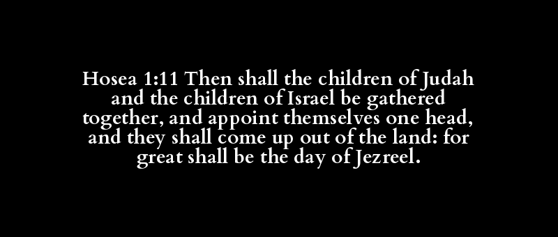 Hosea 1:11 Then shall the children of Judah and the children of Israel be gathered together, and appoint themselves one head, and they shall come up out of the land: for great shall be the day of Jezreel.