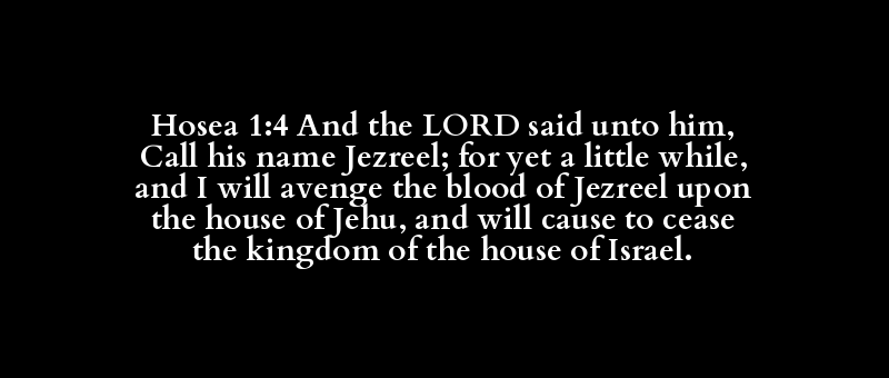 Hosea 1:4 And the LORD said unto him, Call his name Jezreel; for yet a little while, and I will avenge the blood of Jezreel upon the house of Jehu, and will cause to cease the kingdom of the house of Israel.