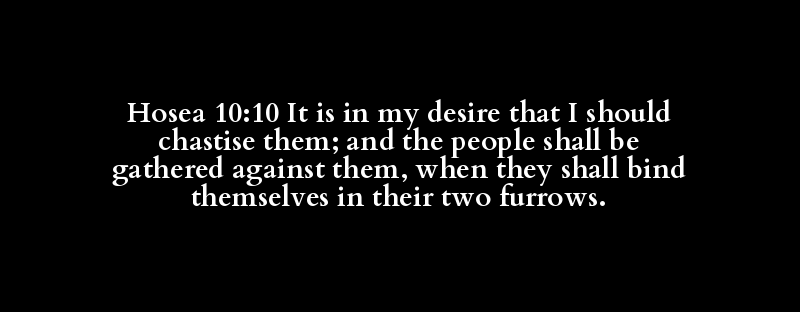 Hosea 10:10 It is in my desire that I should chastise them; and the people shall be gathered against them, when they shall bind themselves in their two furrows.