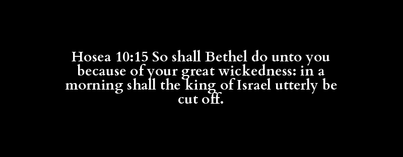 Hosea 10:15 So shall Bethel do unto you because of your great wickedness: in a morning shall the king of Israel utterly be cut off.
