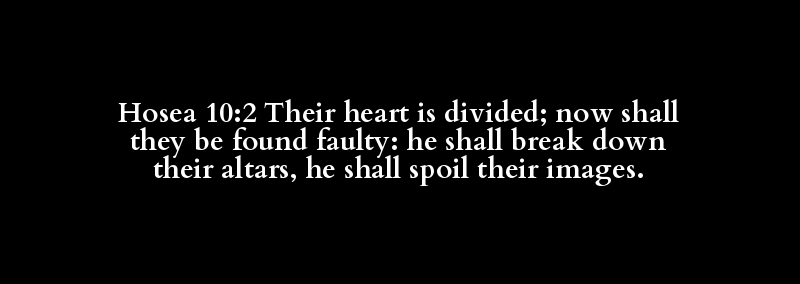 Hosea 10:2 Their heart is divided; now shall they be found faulty: he shall break down their altars, he shall spoil their images.