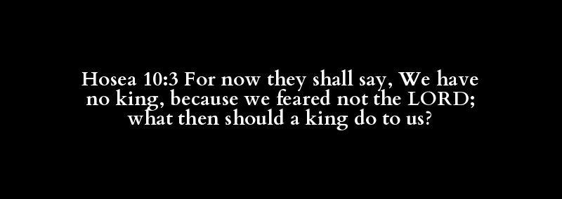 Hosea 10:3 For now they shall say, We have no king, because we feared not the LORD; what then should a king do to us?