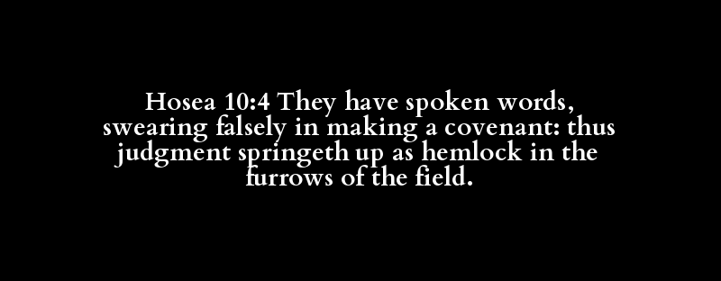 Hosea 10:4 They have spoken words, swearing falsely in making a covenant: thus judgment springeth up as hemlock in the furrows of the field.