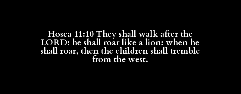 Hosea 11:10 They shall walk after the LORD: he shall roar like a lion: when he shall roar, then the children shall tremble from the west.
