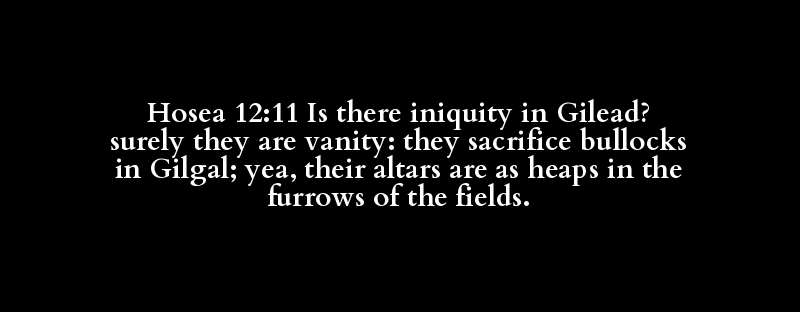 Hosea 12:11 Is there iniquity in Gilead? surely they are vanity: they sacrifice bullocks in Gilgal; yea, their altars are as heaps in the furrows of the fields.