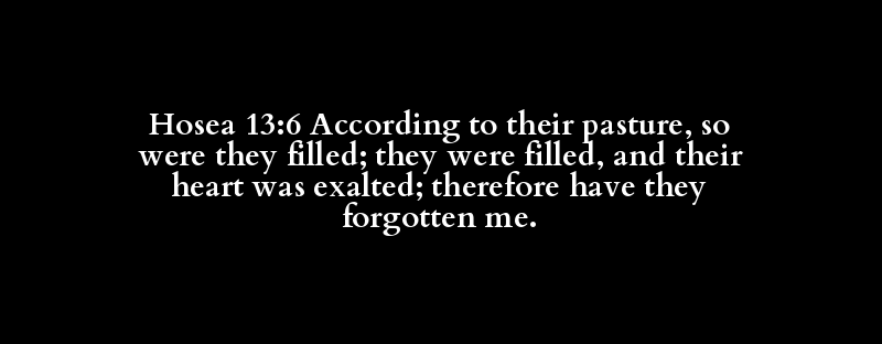Hosea 13:6 According to their pasture, so were they filled; they were filled, and their heart was exalted; therefore have they forgotten me.