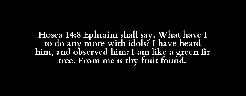 Hosea 14:8 Ephraim shall say, What have I to do any more with idols? I have heard him, and observed him: I am like a green fir tree. From me is thy fruit found.