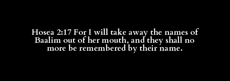 Hosea 2:17 For I will take away the names of Baalim out of her mouth, and they shall no more be remembered by their name.